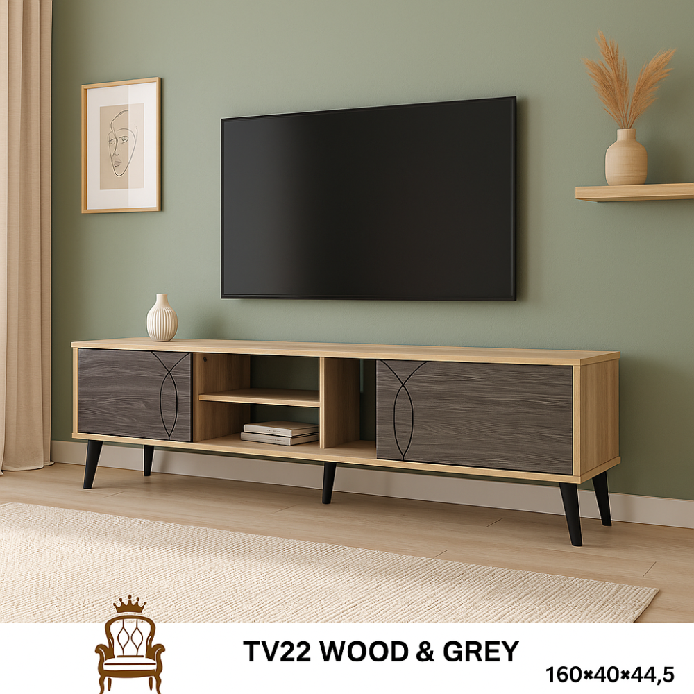 تمنح الأرجل السوداء المائلة ثباتًا وأناقة إضافية، كما تضيف لمسة تصميمية ملفتة. الطاولة ليست فقط مكانًا للتلفاز، بل عنصرًا جماليًا يضفي ترتيبًا وأناقة على أي مساحة.